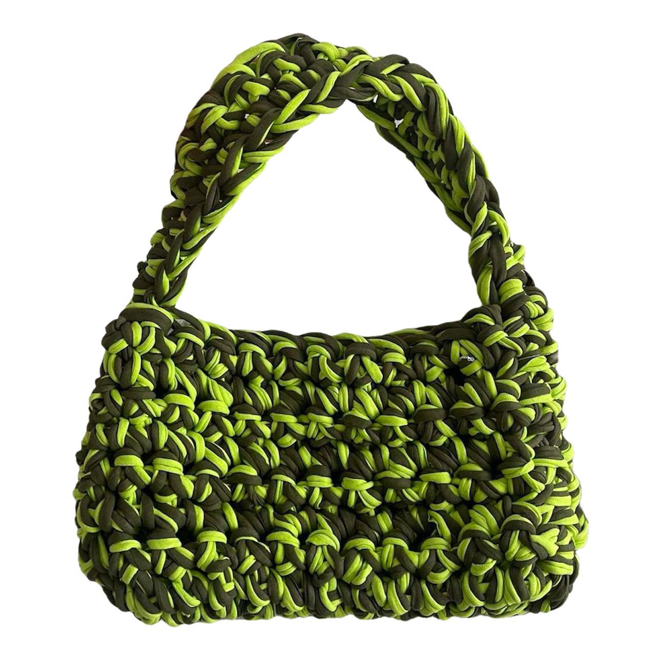 Handmade oversized crochet crossbody sling bag in Bright Green + Khaki mix